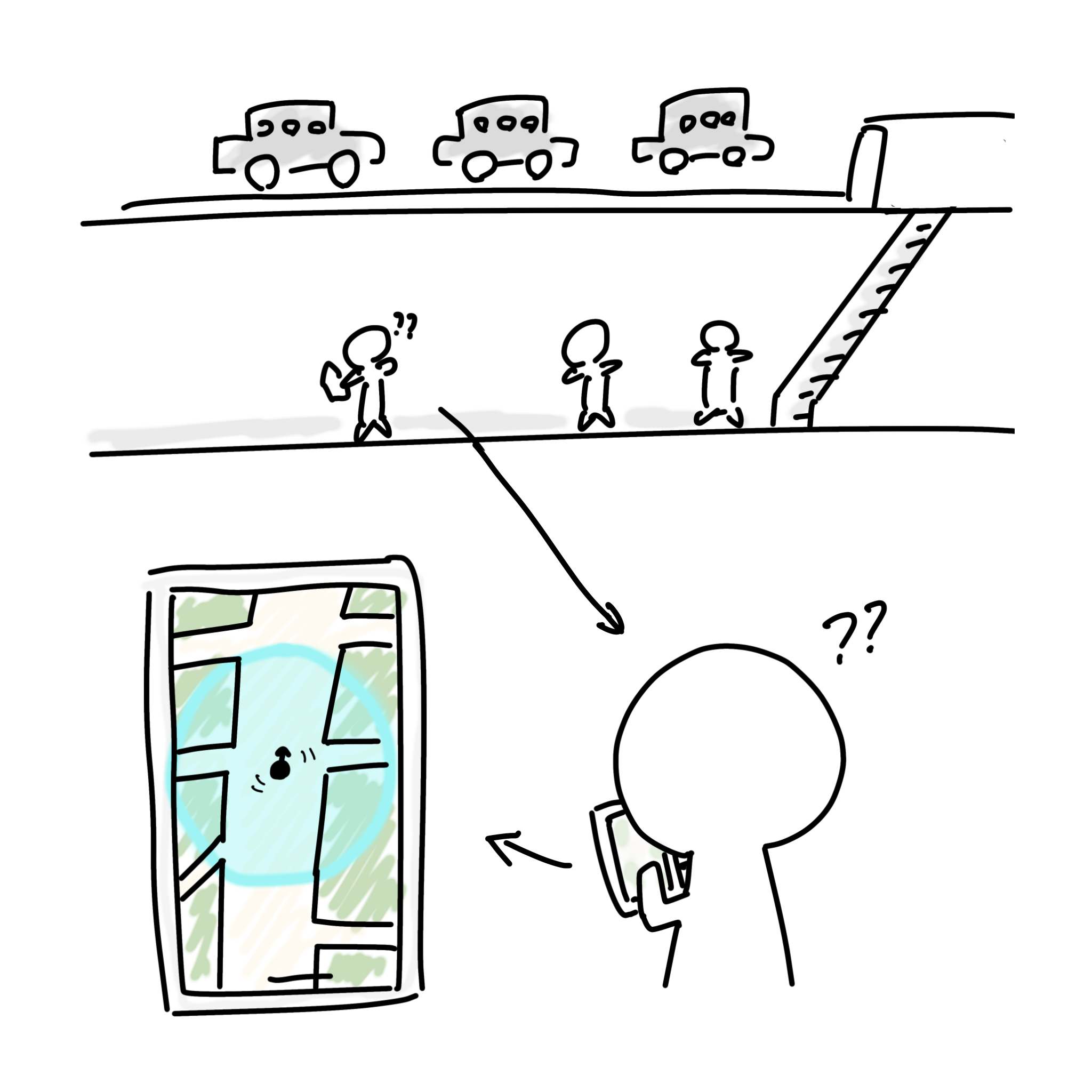 地上では便利に使える地図アプリも、地下では位置情報を取得できず自分がどこにいるのかわからないということが起きてしまう。